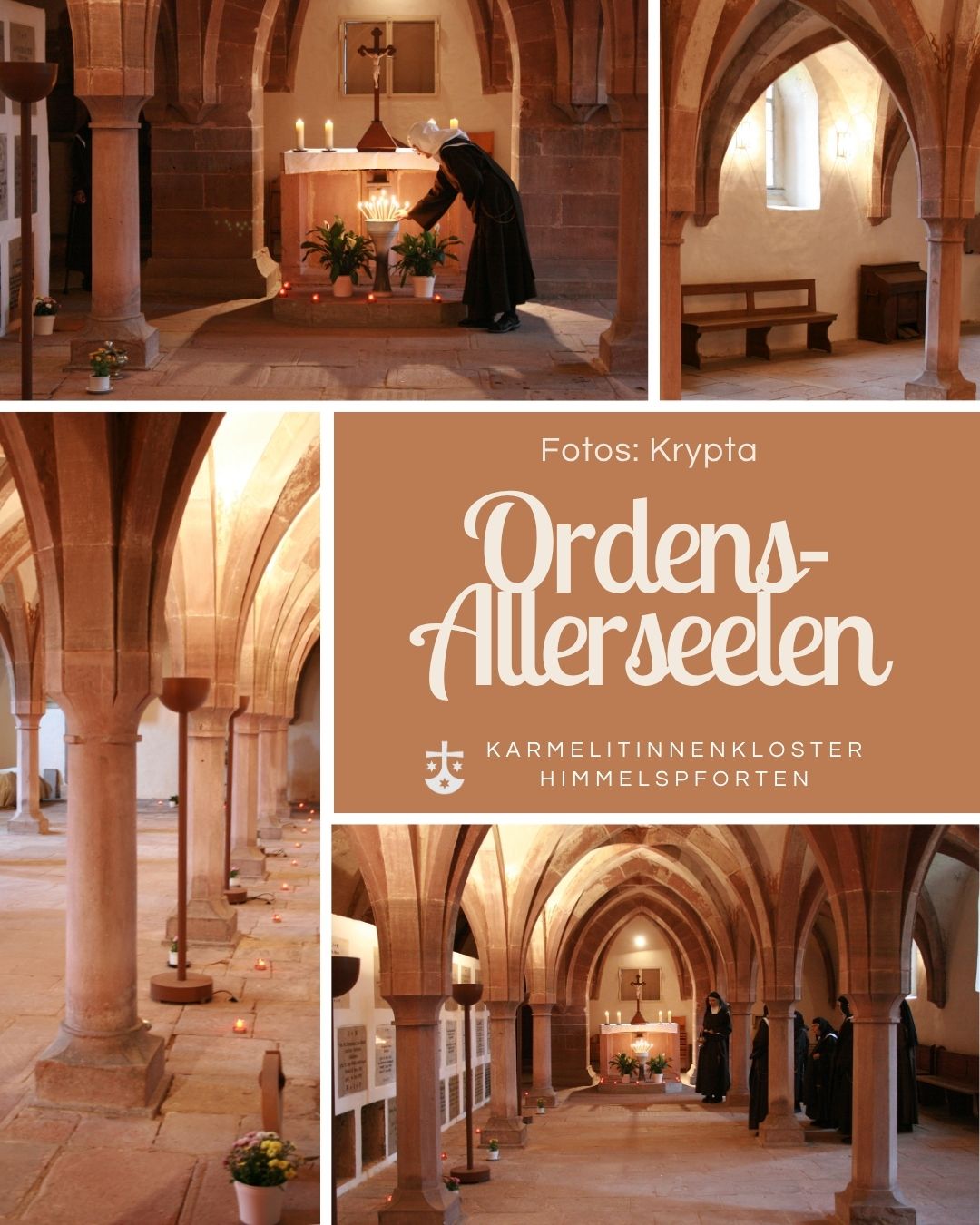 Die Fotos der beigefügten Collage stammen von uns Schwestern und möchten die besondere Atmosphäre unserer Krypta sichtbar machen.