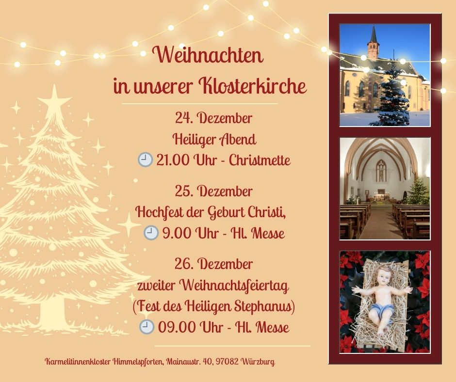 Wir Karmelitinnen von Himmelspforten wünschen Ihnen und allen Ihren Lieben von Herzen frohe, friedvolle und gesegnete Weihnachten! Von ganzem Herzen ...